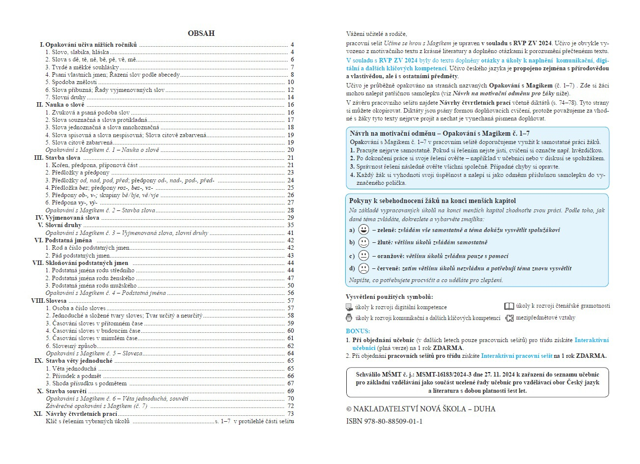 Pracovní sešit Učíme se hrou s Magikem je upraven v souladu se zásadami RVP ZV 2024. Učivo českého jazyka je propojeno zejména s přírodovědou a vlastivědou, ale i s ostatními předměty.