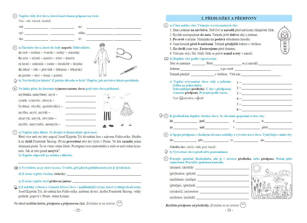 V závěru pracovního sešitu najdete Návrhy čtvrtletních prací včetně diktátů (s. 74–78). Tyto strany si můžete okopírovat. Diktáty jsou psány formou doplňovacích cvičení, protože považujeme za vhodné s žáky tyto texty nejprve projít a nechat je vynechaná písmena doplňovat, teprve potom text napsat formou diktátu.