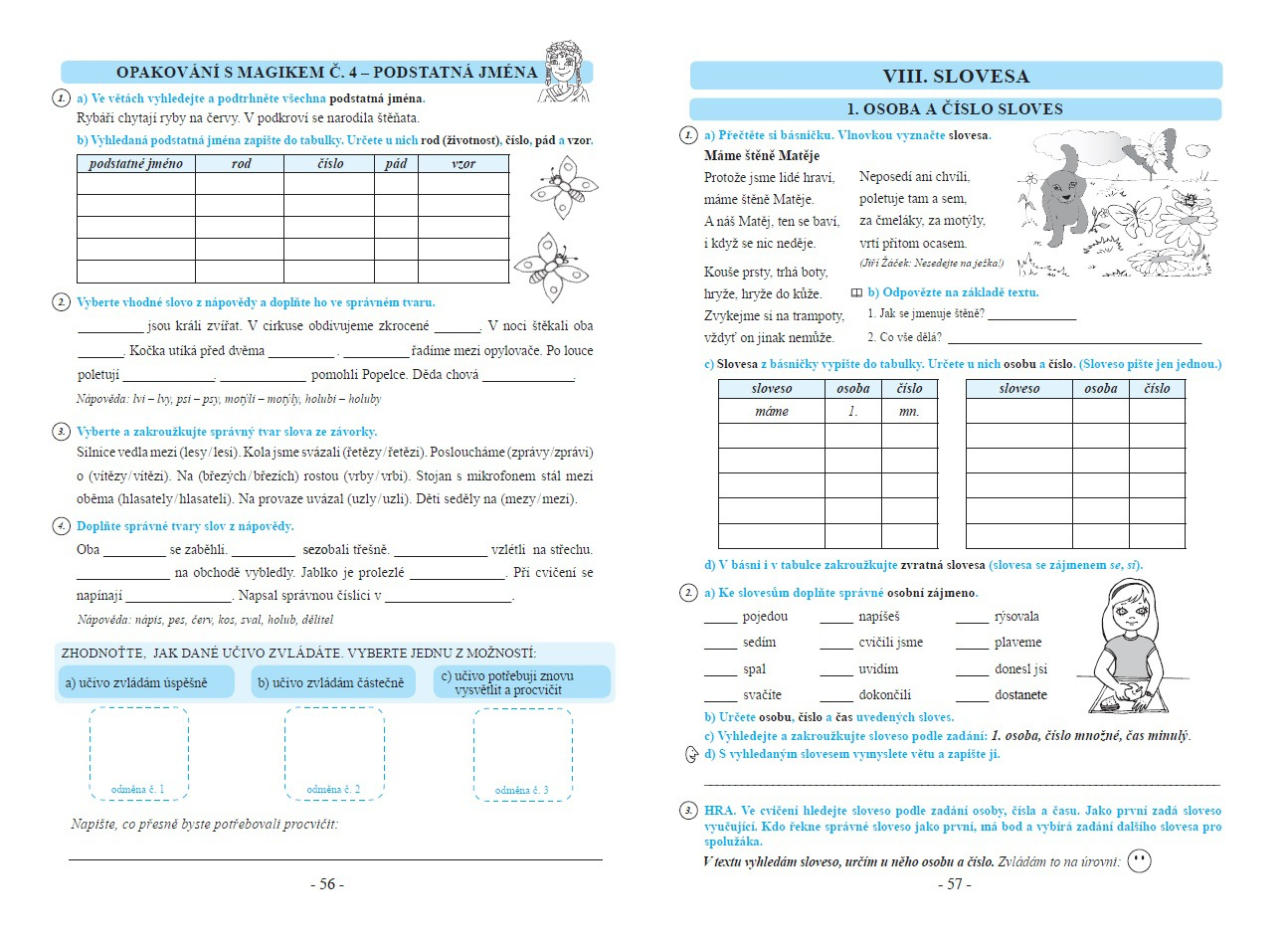 Učivo je průběžně opakováno na stranách nazvaných Opakování s Magikem (č. 1–7) . Zde si žáci mohou nalepit patřičnou samolepku (viz Návrh na motivační odměnu pro žáky níže).