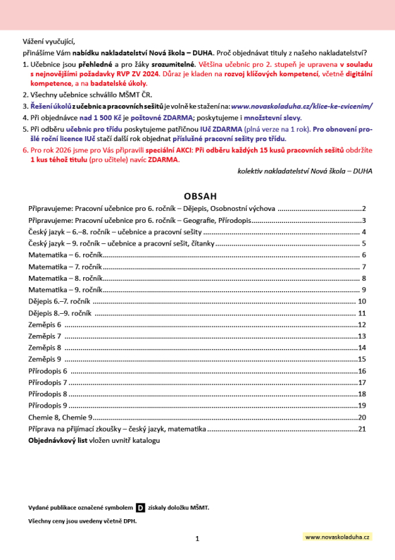 3. Řešení úkolů z učebnic a pracovních sešitů je volně ke stažení na: www.novaskoladuha.cz/klice-ke-cvicenim/