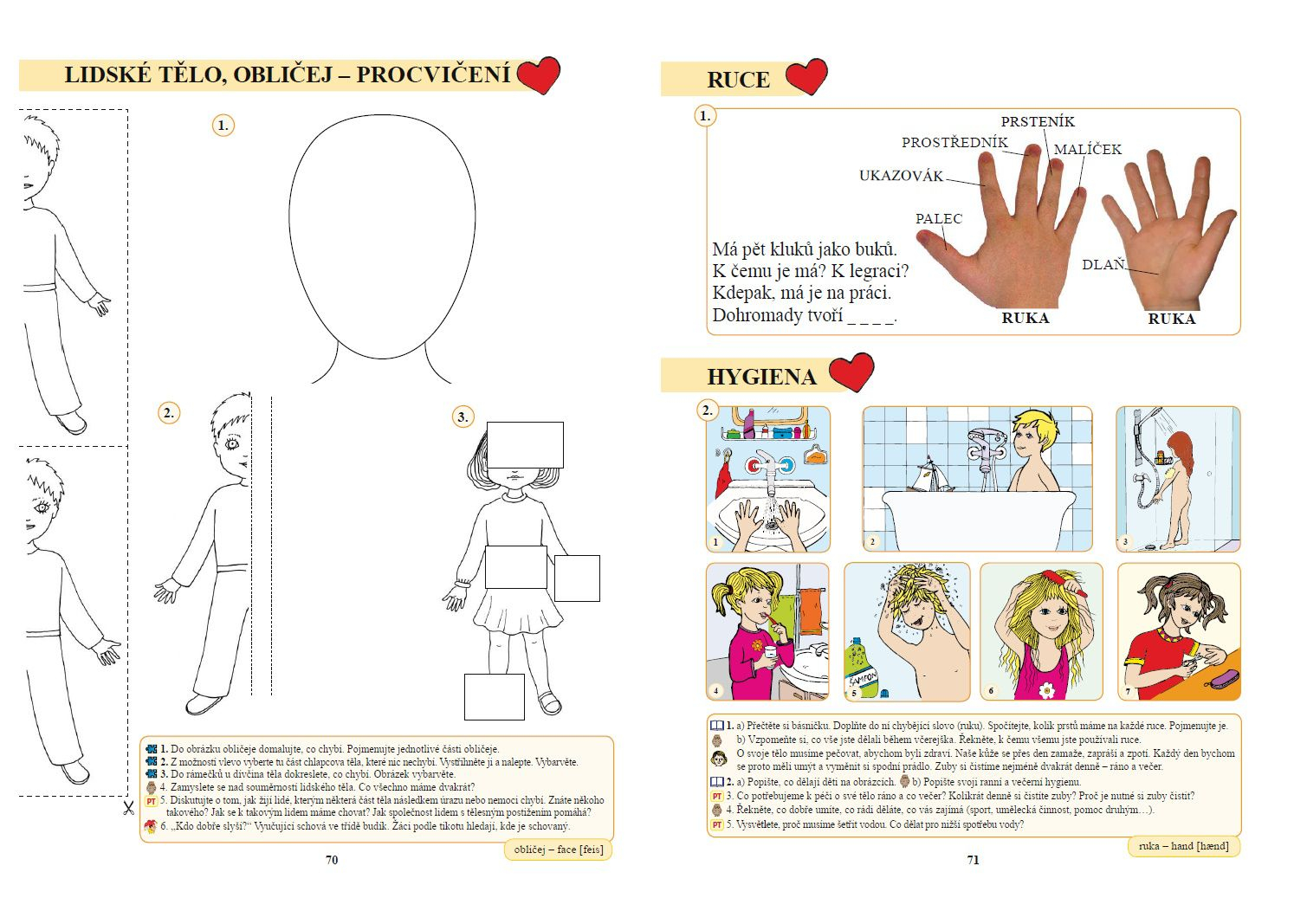 Důležitým prvkem jsou metodické pokyny a úkoly uvedené drobným písmem na spodním okraji strany.