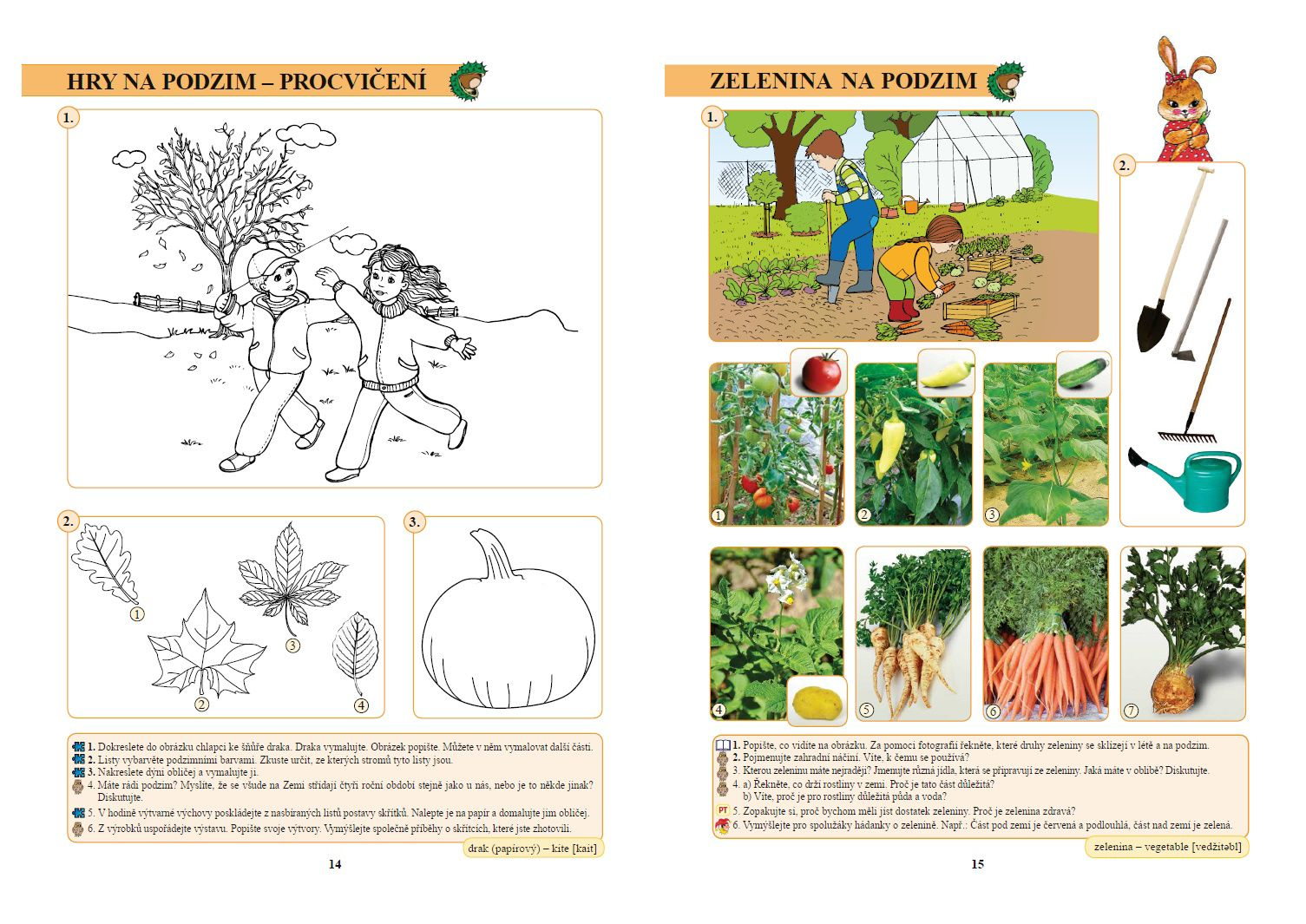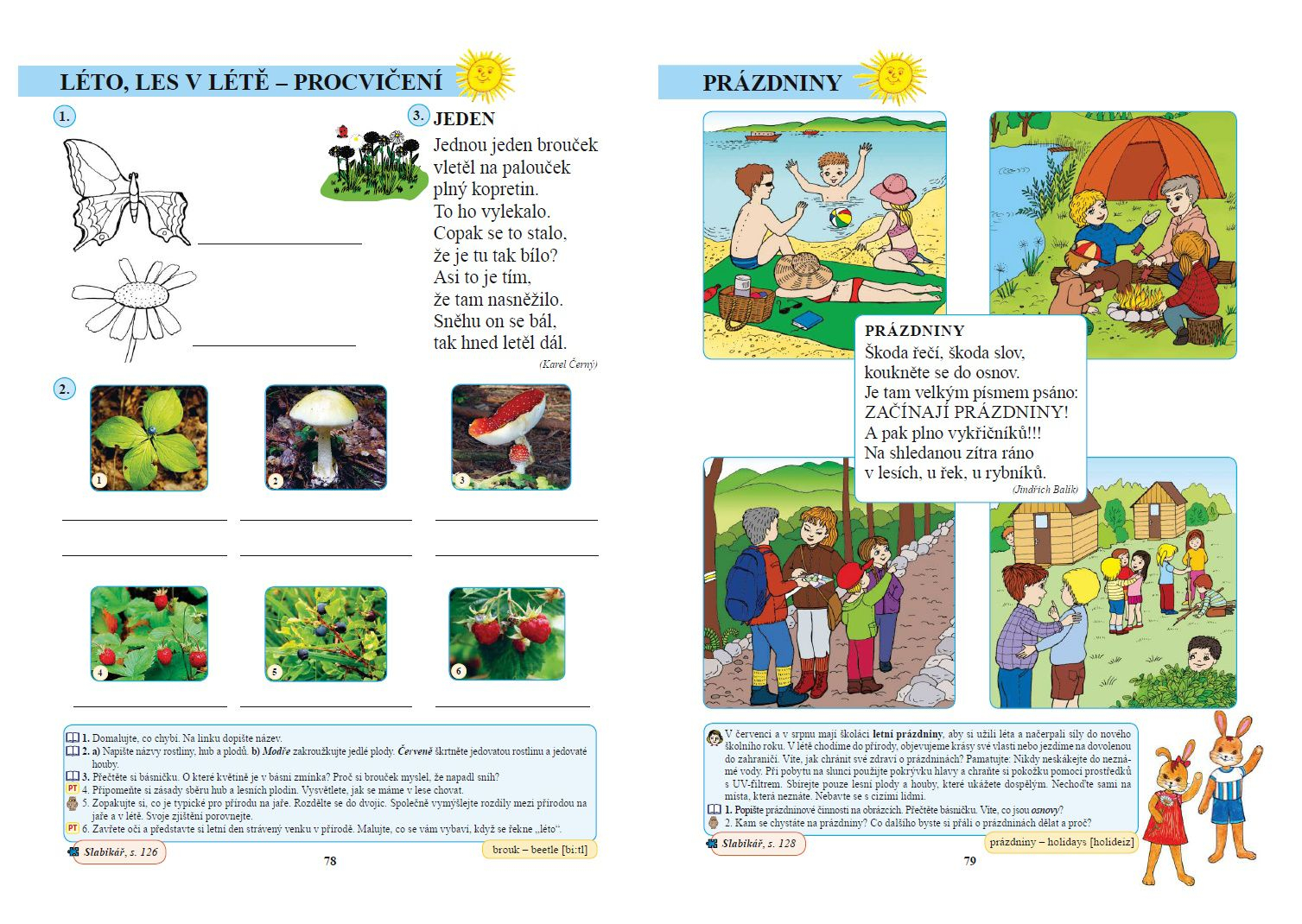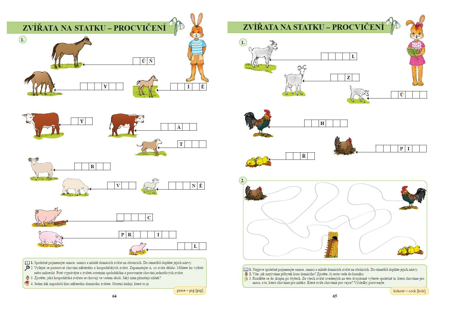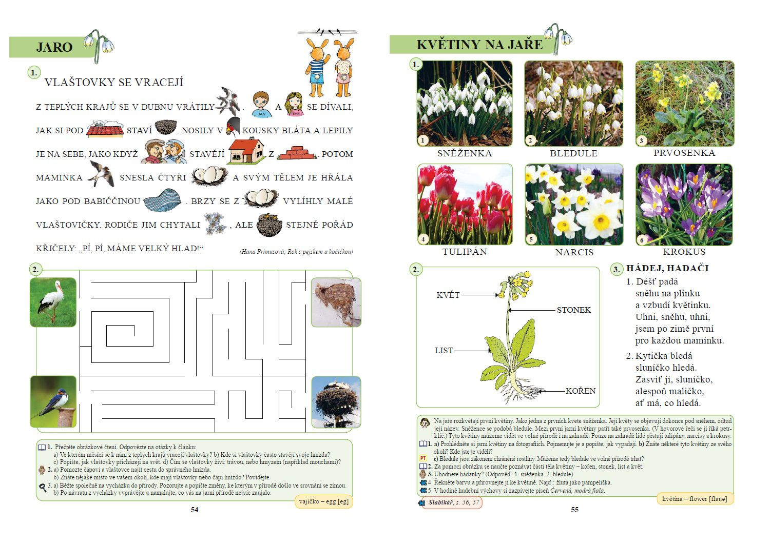 Na levém spodním okraji jsou uvedeny odkazy na konkrétní strany v Živé abecedě a Slabikáři, které korespondují s probíraným učivem. Na pravém spodním okraji strany najdete klíčové slovo z dané stránky přeložené do angličtiny, které doporučujeme s dětmi při vhodné příležitosti nacvičit.